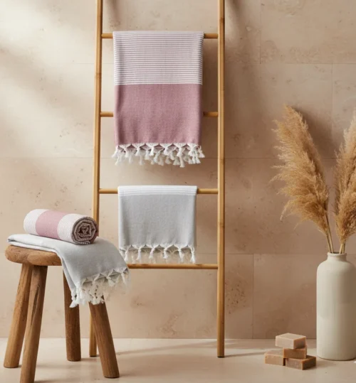 A versatile and elegant peshtemal towel made from 100% cotton, designed for modern daily use. Lightweight, highly absorbent, and fast drying, it is ideal for the bathroom, beach, spa, sauna, gym, and travel. Its double-sided design offers both functionality and style, while the soft natural texture provides breathable comfort and long-lasting performance.